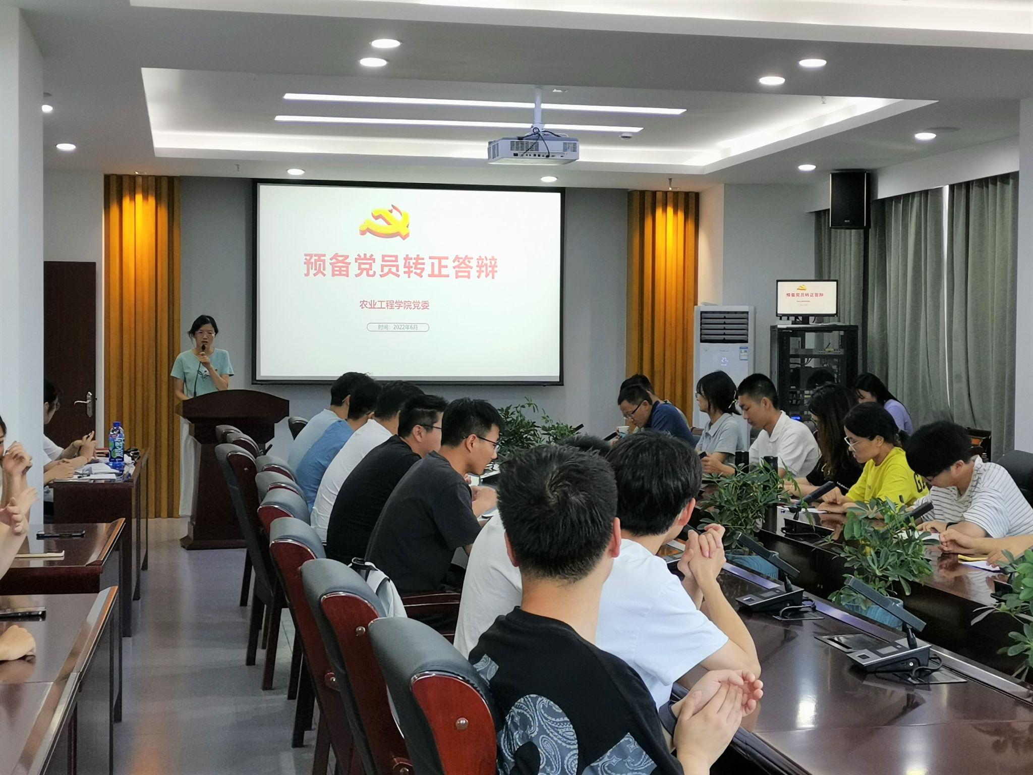 6月15日,欧亿体育·(中国)官方网站2022年上半年拟发展对象预审及预备党员转正答辩会在耒耜大楼F304举行,欧亿体育·(中国)官方网站党委副书记、副院长周军出席会议,会议由欧亿体育·(中国)官方网站党务办主任唐晓红主持,全体辅导员、党支部书记及入党积极分子代表参加会议。