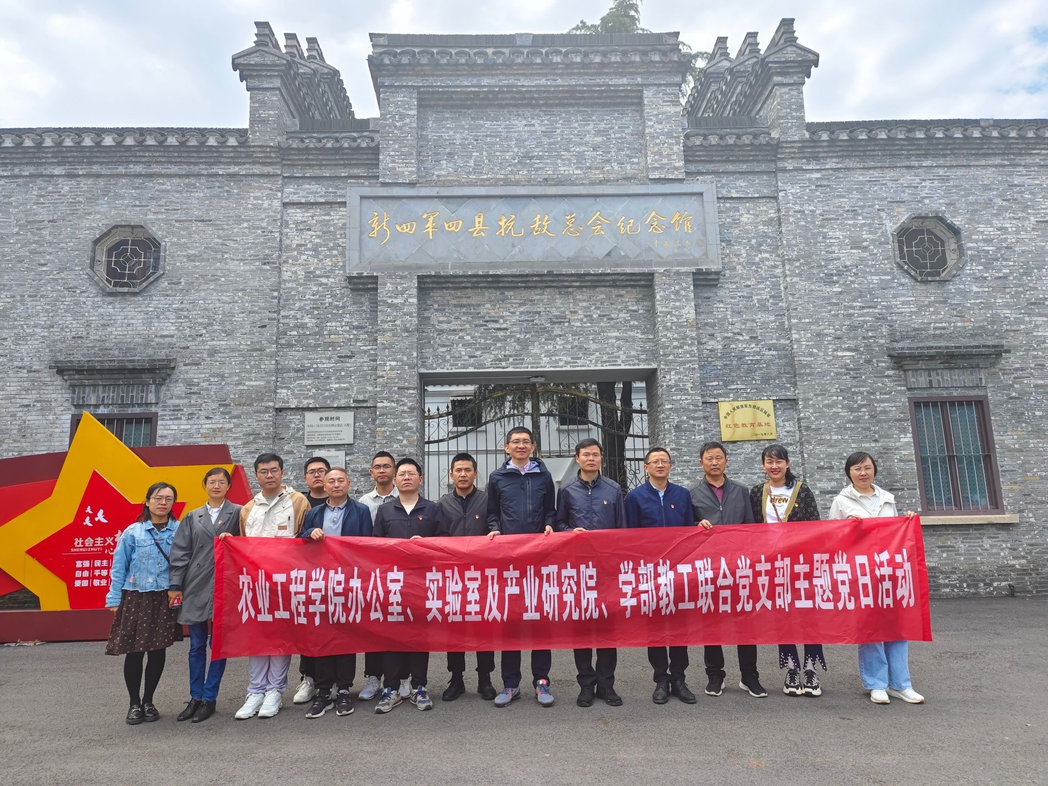 为深入学习贯彻党的二十大精神,积极推进学习贯彻习近平新时代中国特色社会主义思想主题教育,5月11日,欧亿体育·(中国)官方网站党委书记、关工委主任金玉成带领学院办公室、实验室及产业研究院、学部联合党支部党员、关工委老同志及群众代表赴革命老区宝堰开展“传承红色根脉 校地携手共话乡村振兴”主题党日活动。