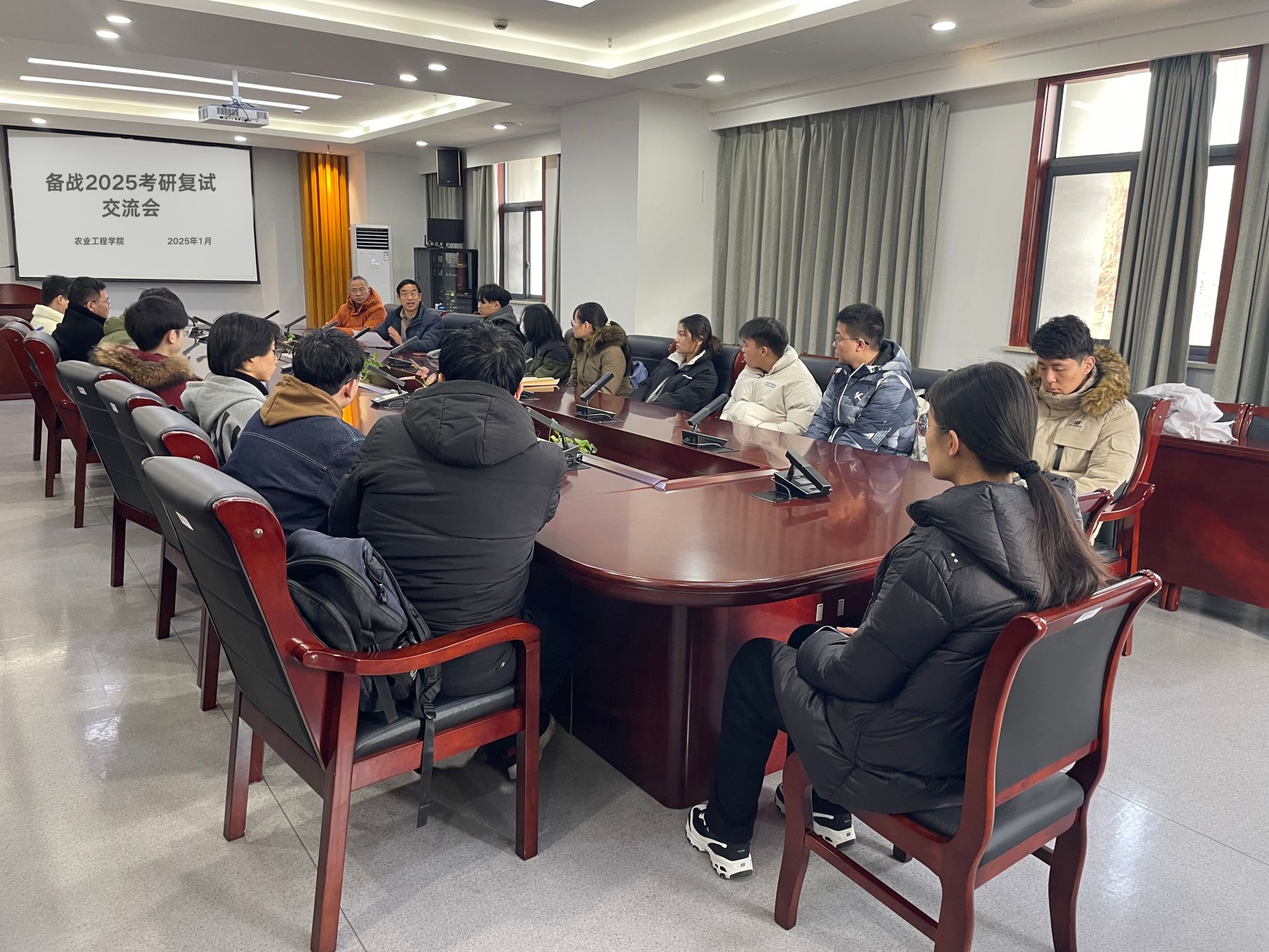 农工学院2025考研复试备战交流会分专业依次进行,关工委老教师与学生互动频繁,学生们纷纷表示收获颇丰,对即将到来的考研复试充满了信心和期待。