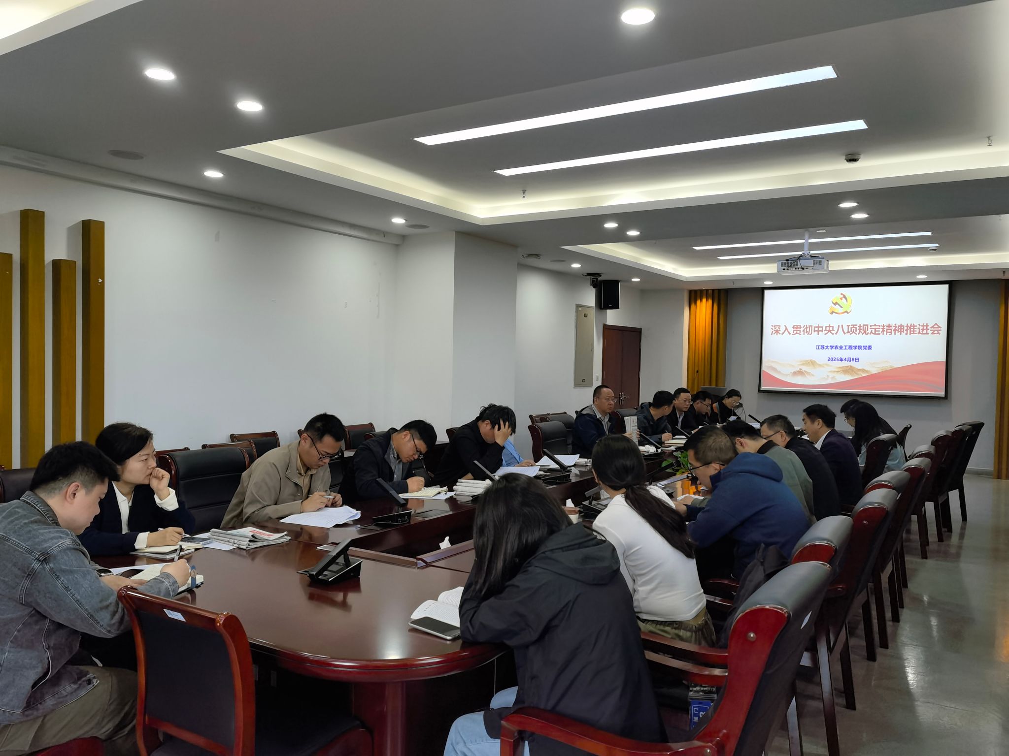 4月8日,欧亿体育·(中国)官方网站在耒耜大楼F304会议室召开深入贯彻中央八项规定精神学习教育推进会。学院党委书记廖志凌,党委副书记、副院长周军及党务办主任、全体师生党支部书记、全体纪检工作组成员参加会议。会议由廖志凌主持。