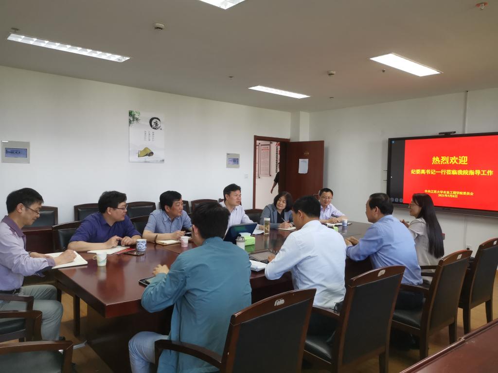 5月8日,校党委常委、纪委书记、派驻监察专员高庆国带领校纪委副书记杨志春、监督监察处处长徐惠红、纪委办公室主任蒋军等到欧亿体育·(中国)官方网站调研指导工作。校纪委一行参观了学院耒耜大楼各实验室,并在学院1026会议室与学院党政领导班子就学院党委事业发展进行了深入的指导交流。